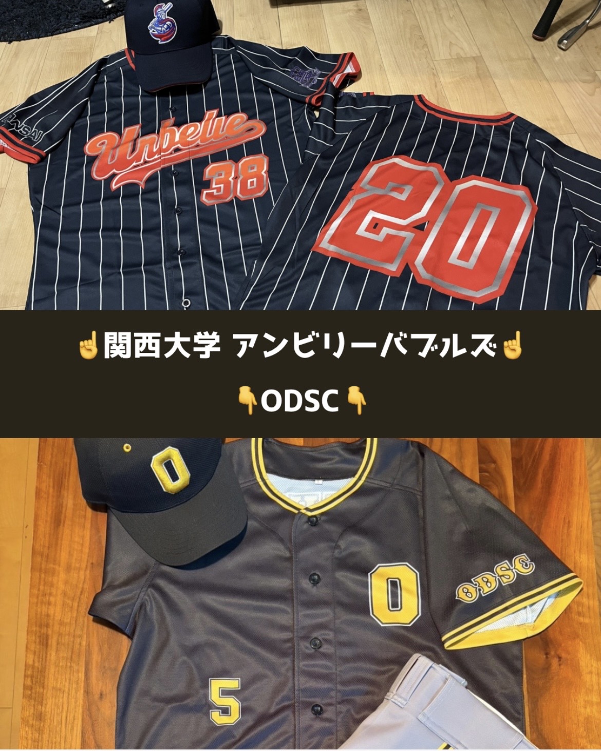 アンビリ セカユニとして作成依頼をいただき、色、背番号の大きさ、ラインの太さなど細かい部分にもこだわり出来上がったユニ🔥 ODSC ユニの色、番号や背ネームの色などにこだわり作成した上下キャップの3点セット! 難しい色合いでしたが希望通りの仕上がりに🔥