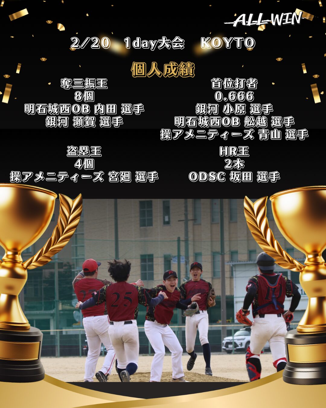 2026年2月20日【冬Fes 1day野球大会 in 京都】個人賞